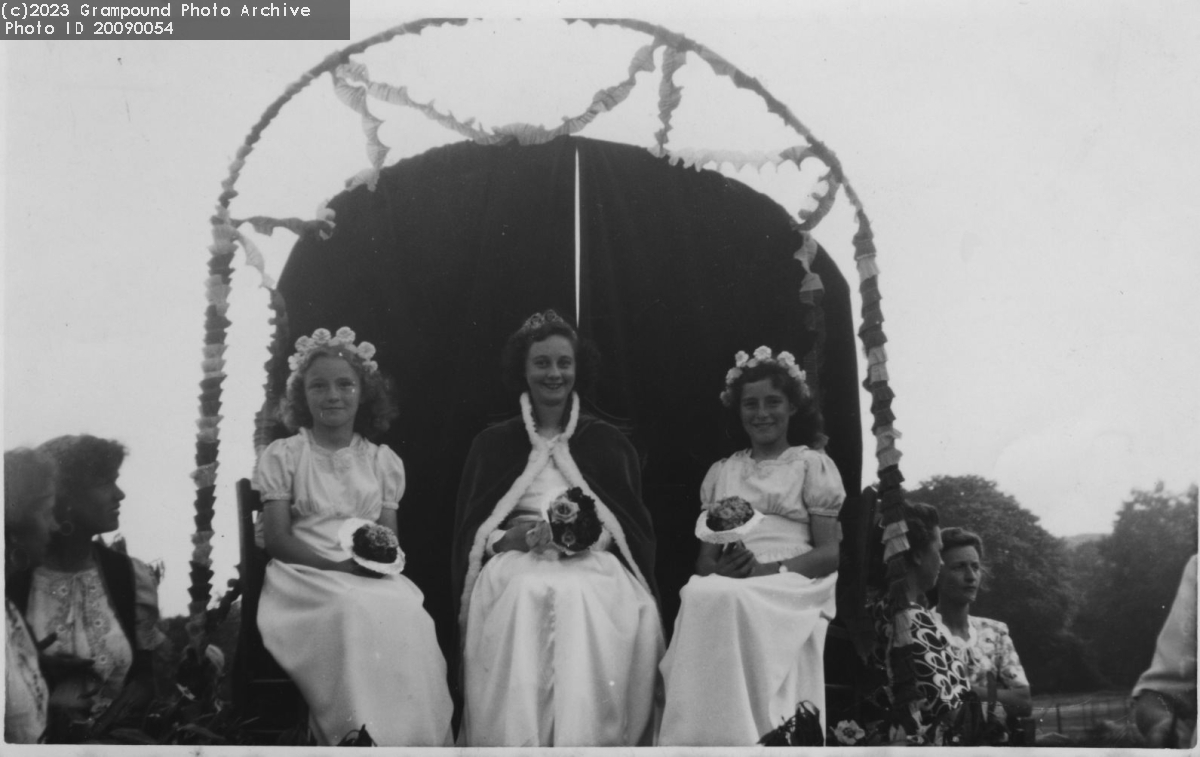 The Carnival Queen 1949. The Queen is Jean Juleff (now Hicks) and the attendants are (left) Joan Mannell and (right) Joan Richards. Both the Mannell and the Richards families occupied Glen View, the house that stands in the fork on Old Hill, at different times.