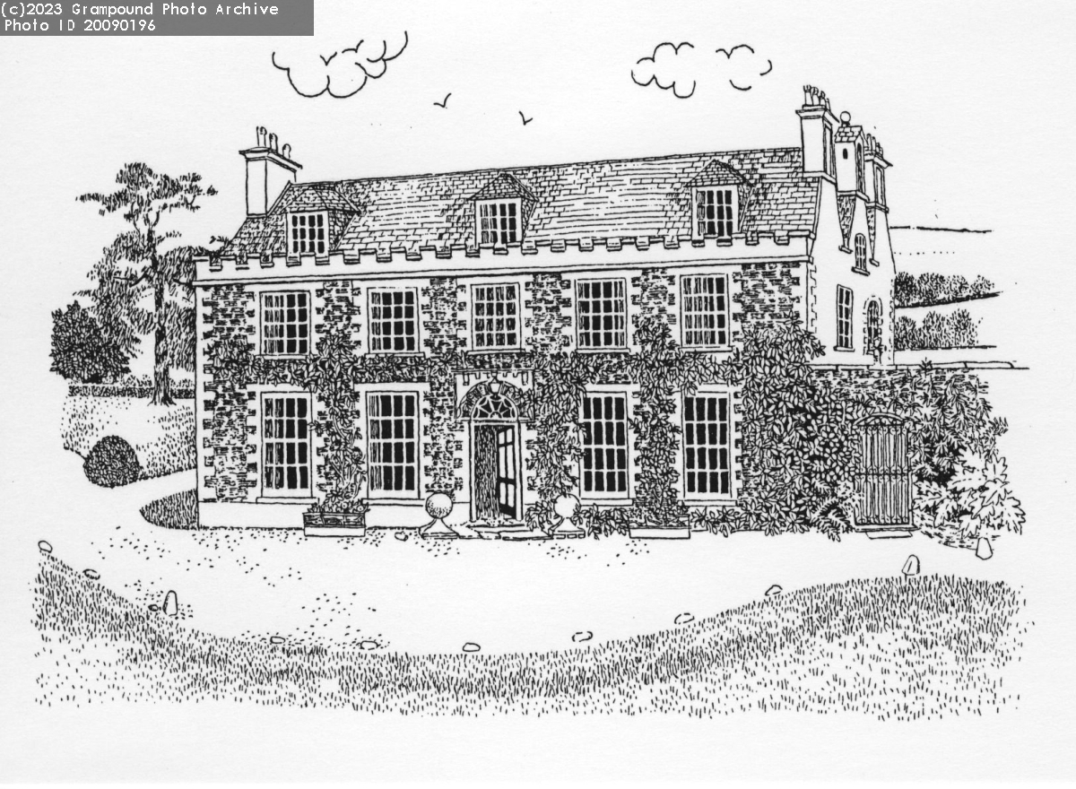 An original drawing by Mary Oliver - Garlenick. This was produced for The Book of Grampound with Creed by Amy Bane and Mary Oliver. A full account of the history of the house and estate appears on pages 135 - 139.