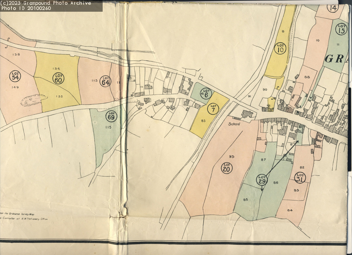 Plan of Lots 6,7,10,15,20,29,31,54,60,64,69 (scale 1 - 2500) - SW section of village including Bermondsey, Old Hill, lower Fore Street& Mill Lane.