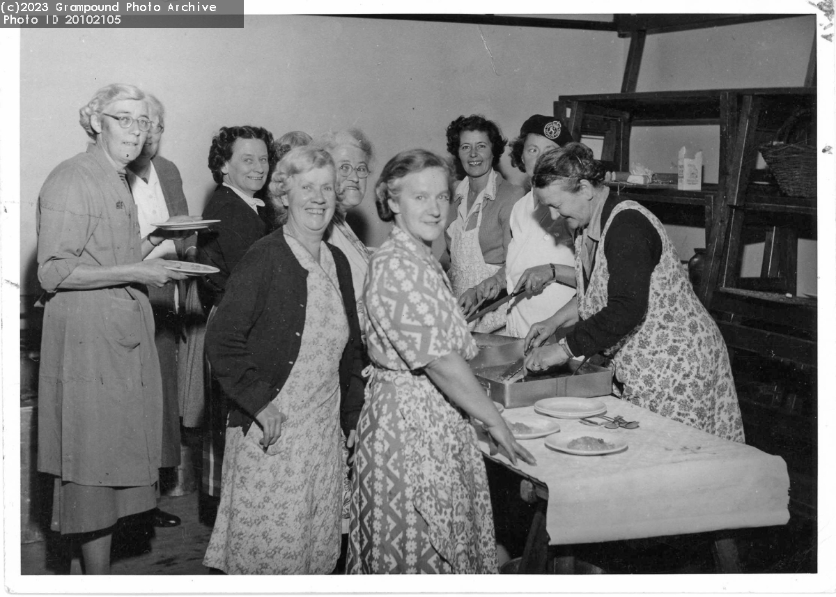 Civil Defence women queueing to be served meals 1949-50 in old village hall