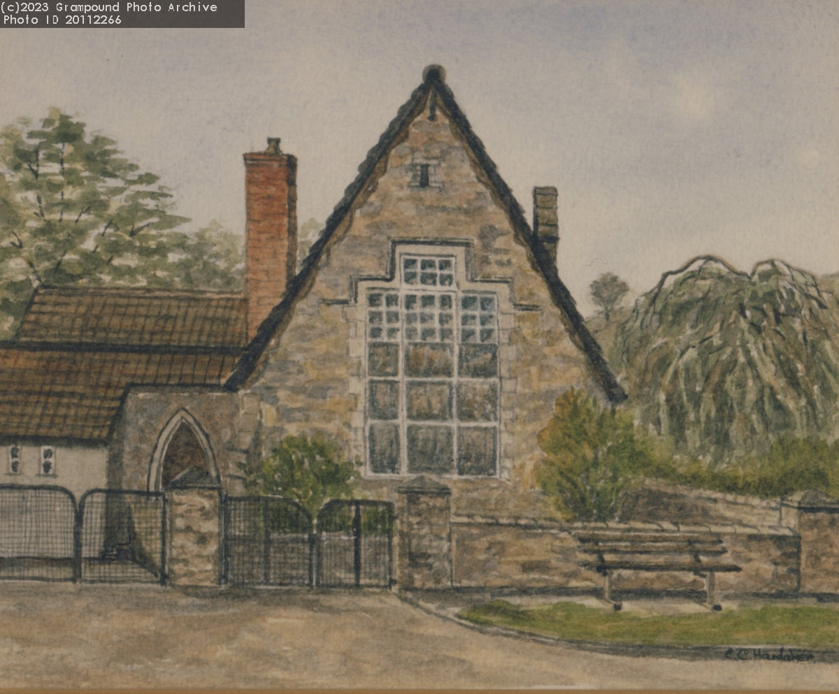 The artist was Edith Hardaker and it is believed that it was executed in the 1980s. Edith Hardaker only took up painting when she retired at 70 but quickly became so accomplished in watercolour work that she taught classes in the subject. As the mother of Peter Hardaker, she was a frequent visitor to Grampound and painted many views of the village and surrounding area.