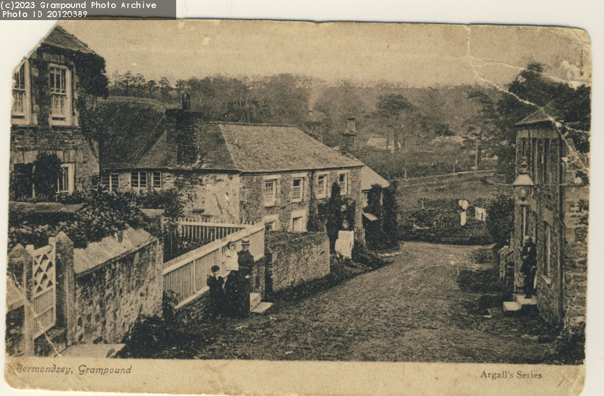 Bermondsey, Grampound ie bottom of Old Hill and looking downhill. Date unknown but this was a postcard whose stamp was of the period 1918-21. The picture is probably earlier, perhaps late 19th or early 20th century.