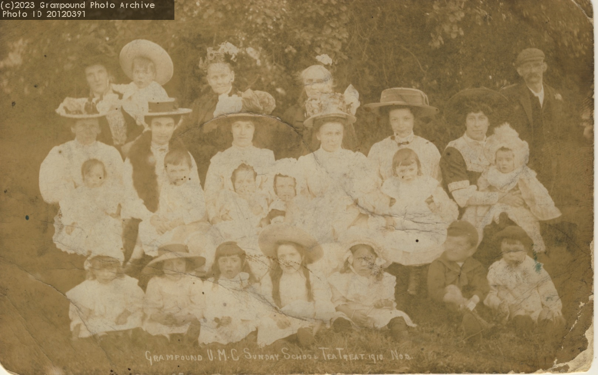 Grampound United Methodist Chapel Sunday School Tea Treat 1910. This was a postcard.