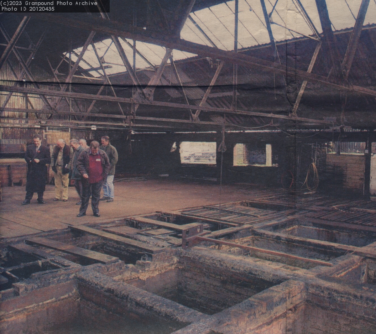Cornish Guardian November 2000 - at the time the Manor Tannery ceased production. Local MP Matthew Taylor and Councillor John Lobb debate the future of the site during a tour with tannery chiefs. The view is of the tanning pits - now empty.