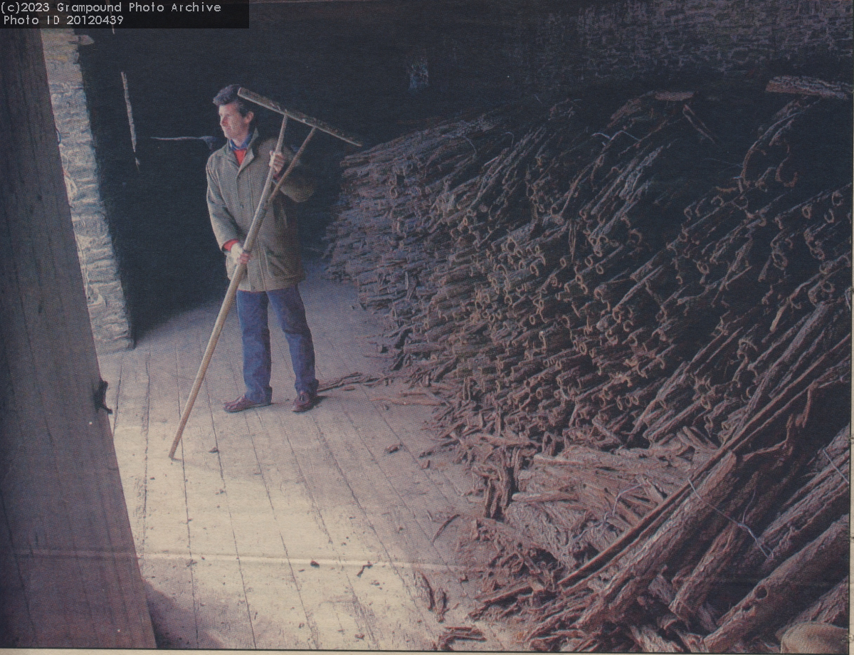 Cornish Guardian November 2000 - at the time the Manor Tannery ceased production. Jonathon Croggon in the bark store. This was ground and mixed with water to make tan liquor.