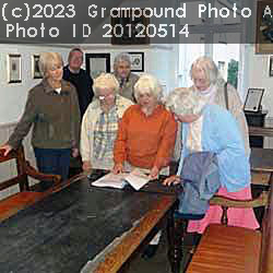 Camelford and District Old Cornwall Society visiting Grampound on 9th May 2011. This is one of a number of branches of the Old Cornwall Society that have visited the Grampound with Creed Heritage Centre. Members are pictured in the Council Chamber on the first floor of Grampound's Historic Town Hall. They are being guided by Heritage Project researcher and Parish Councillor, Mrs Tina Tyler.
