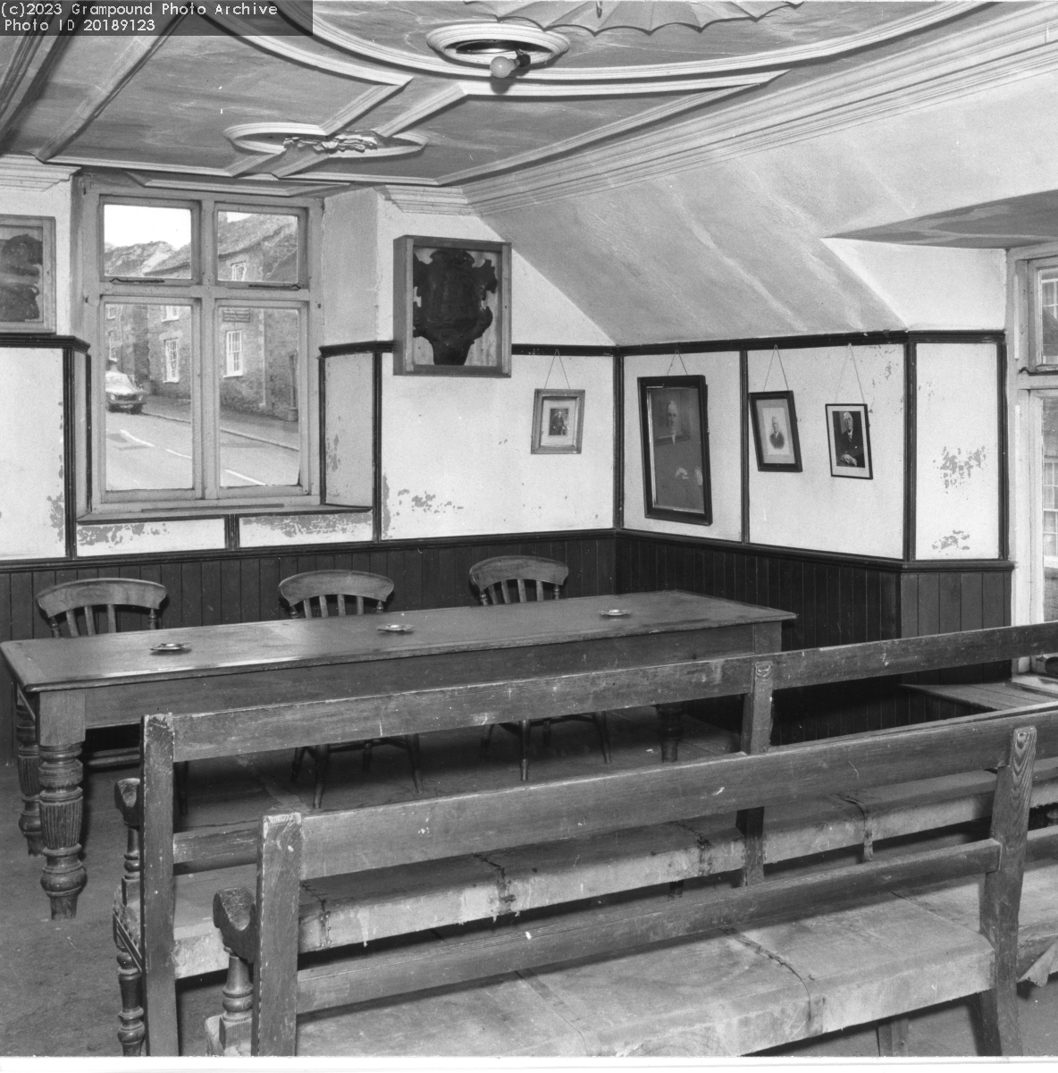 The room on the upper floor of the Town Hall, known as the Reading Room, where the Parish Council meets once a month. Circa 1990s before renovation in 2009.