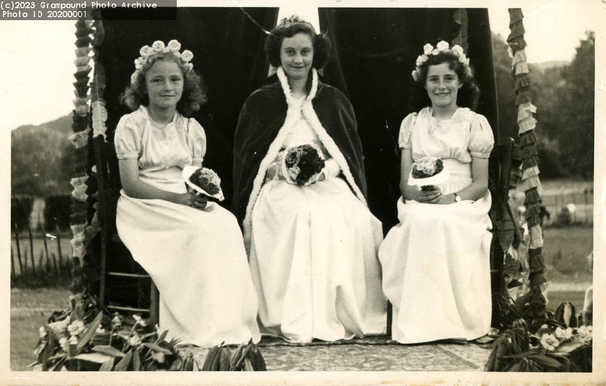 1949, first carnival after the war, Queen is Jean Juleff (later Hicks), attendants are Joan Mannell and Joan Richards.